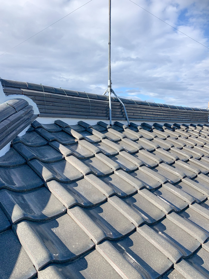 隅棟鬼瓦が元に戻り、心配だった鬼瓦・接続部の漆喰がきれいになり、瓦のズレも直り、心配事が無くなりました、有り難うございました。